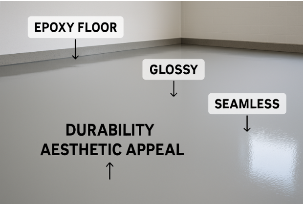 - Epoxy enhances appearance, offering customizable colors, finishes, and designs.